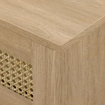 Modern Boho Floating TV Stand For TVs Up To 80″ With Rattan Doors Coastal Oak – Saracina Home