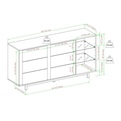 Shing Modern Striped Door 60″ Sideboard With Glass Shelves Dark Walnut – Saracina Home