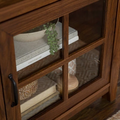 Tasi Transitional Farmhouse Glass Window Pane Door With Electric Fireplace TV Stand For TVs Up To 80″ – Saracina Home
